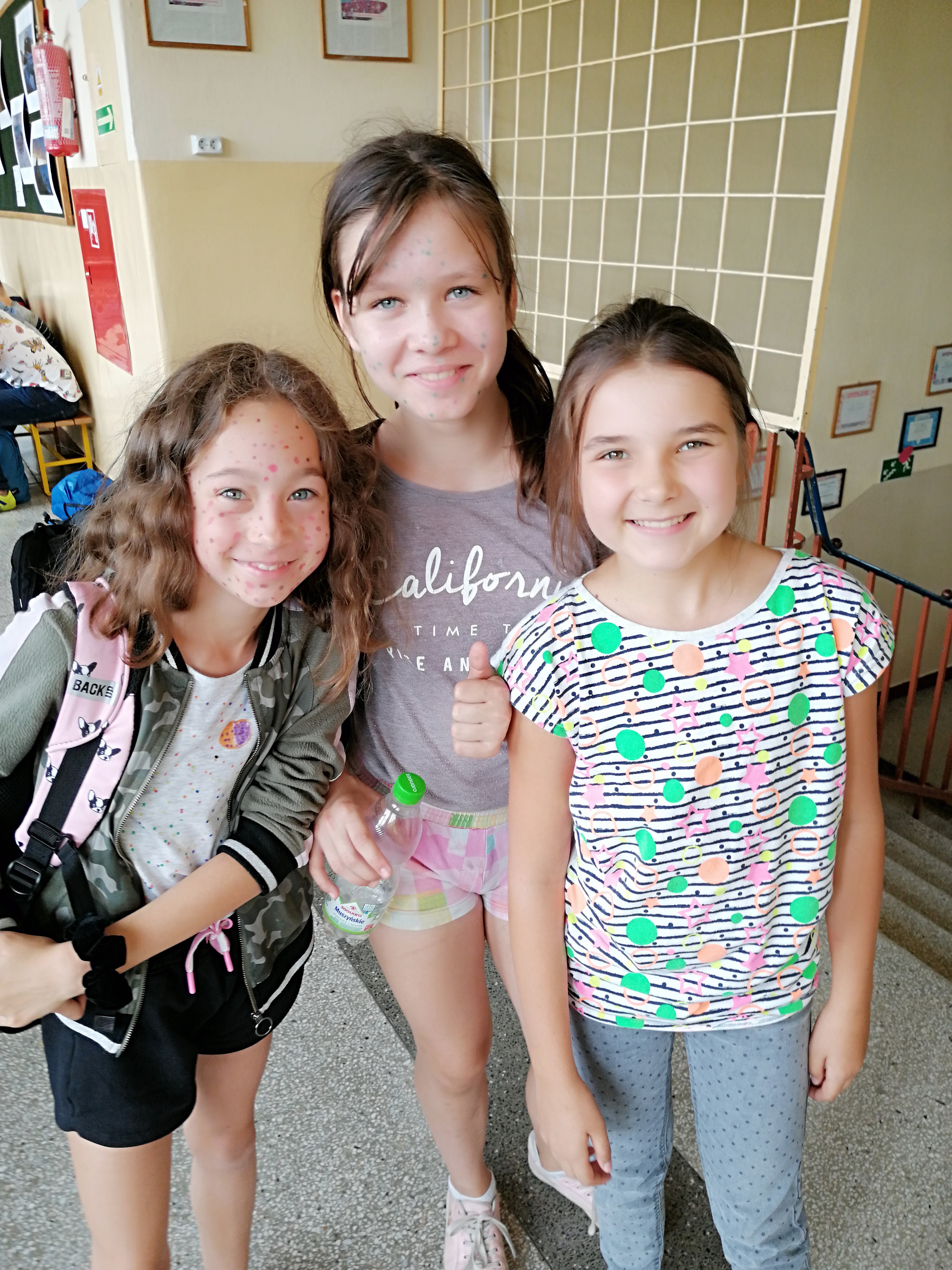 16 października uczniowie ubrani w stroje pełne kropek świętowali ten dzień. W całej szkole panował radosny nastrój, a sale i korytarze były ozdobione licznymi kropkami. Sami zobaczcie, jak to wyglądało!